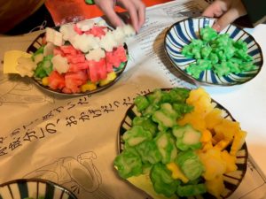 みんなで餅つき、カラフルなお餅も作って、お花の形を作りました︎✿