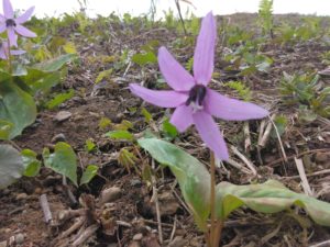 足下も見てください。高柳小学校から広済寺に至るガルルのスキー場の丘を歩くと至る所に春の草花が咲いています。どれも小さく可憐な花ですが、そのひとつひとつに名前があり、そこに咲く理由があります。そして、それらの多くがこれから草が生い茂る夏に入る前に花を散らし、実を結ぶのです。このごく短い間に花を咲かせ、生をつなぐ春の植物たちを「スプリング・エフェラル(儚い春)」と呼ぶそうです。
