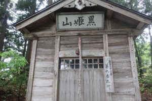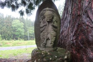 帰路、磯之辺集落のはずれにある風神像と黒姫山観音堂に、山開き当日の天候と安全を祈願しました。この観音堂は越後三十三観音霊場の9番札所であり、人々の願いを叶える如意輪観音が祀られていて、黒姫の神様の本地(本地垂迹説=本来の仏様が仮の姿をとって現世に表れたのが神様であるという説)とされています。又、磯之辺への登り口にある坪野広済寺も如意輪観音を祀る9番札所とされていますが、神様と仏様、神仏習合と廃仏毀釈という日本独特の宗教観と時代の流れを感じながらの黒姫登山もまた面白いですね。